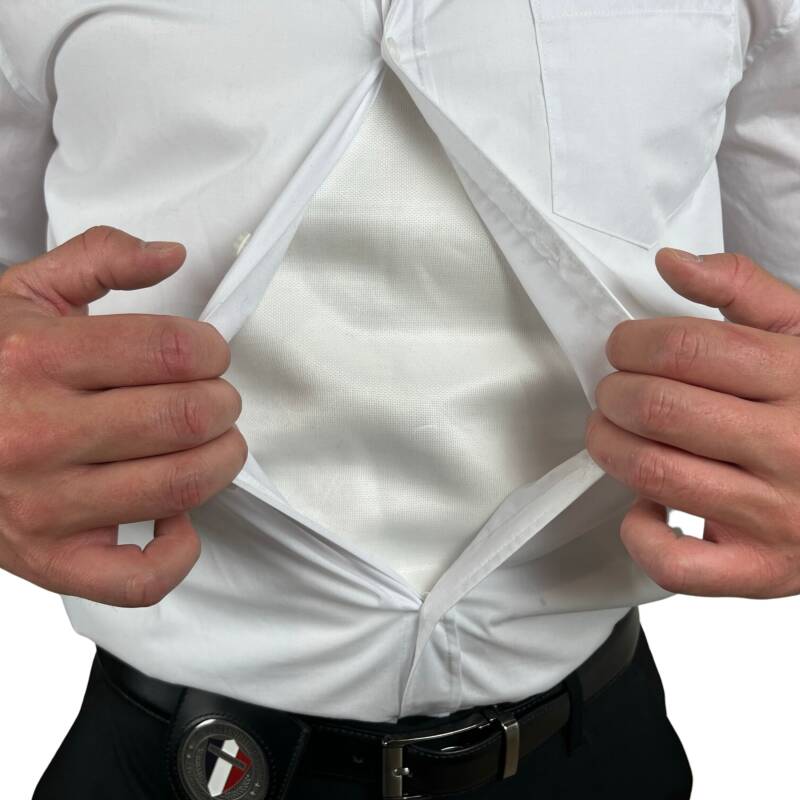 Les vêtements sont discrets, ne gênent pas la mobilité et donnent une confiance supplémentaire à l'agent, le public n'est pas choqué par une tenue agressive.