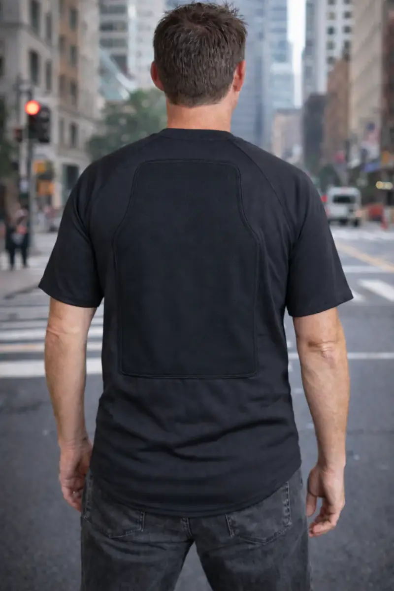 est réellement discrète et fonctionnelle , elle couvre une partie plus importante de votre corps et vous procure un avantage indéniable , l'assurance que vous allez réellement porter votre protection et pas la laisser à la maison car elle serait trop encombrante ou trop lourde, ce qui est le cas avec les plaques céramiques par exemple !