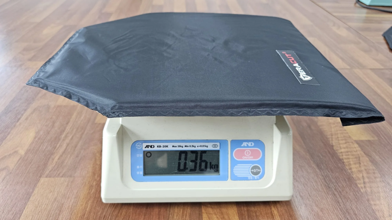 Poids plaque anti couteau seule = 360 grammes !